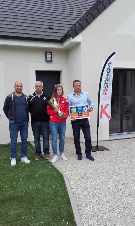 Petit visite chez notre sponsor Maison KERBEA pour présenter la Coupe du Loiret Séniors Féminines récemment gagnée et fièrement brandie par Pierre-Yves (co-président), Marc (coach Séniors F) et Marion (capitaine de l'équipe).